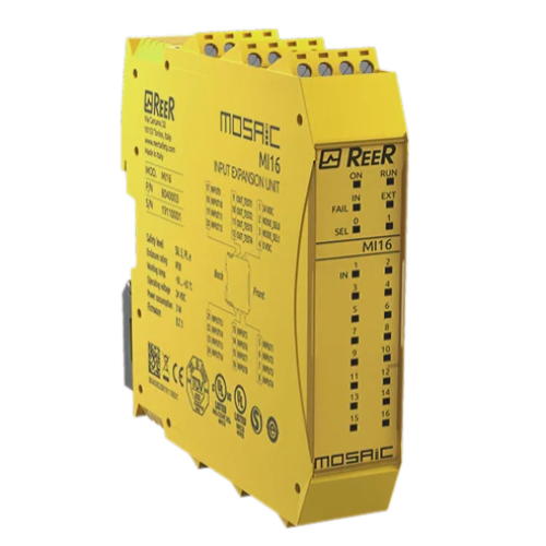 Bộ điều khiển an toàn REER MOSAIC MI16, bộ điều khiển số, bộ điều khiển an toàn, thiết bị điều khiển số là thiết bị MASTER UNIT để điều khiển số cho bất kỳ đơn vị mở rộng nào khác, cũng có thể hoạt động như một thiết bị độc lập trong dây chuyền sản xuất để quán lý các ngõ vào số, các ngõ ra số.
