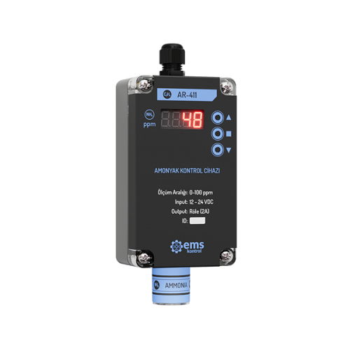 Bộ điều khiển khí Amoniac (NH3) AR‑411 là thiết bị chuyên dụng do hãng EMS (Thổ Nhĩ Kỳ) phát triển, dùng để đo lường và kiểm soát nồng độ khí NH3 trong không khí. Thiết bị tích hợp cảm biến đo chính xác khí Amoniac trong khoảng từ 0 đến 100 ppm, phù hợp với nhiều ứng dụng công nghiệp, nông nghiệp hoặc hệ thống HVAC yêu cầu kiểm soát khí độc. Cảm biến hoạt động ổn định với độ nhạy ±1 ppm và sai số ±2 ppm, đảm bảo dữ liệu chính xác để kích hoạt cảnh báo hoặc điều khiển thiết bị ngoại vi kịp thời.