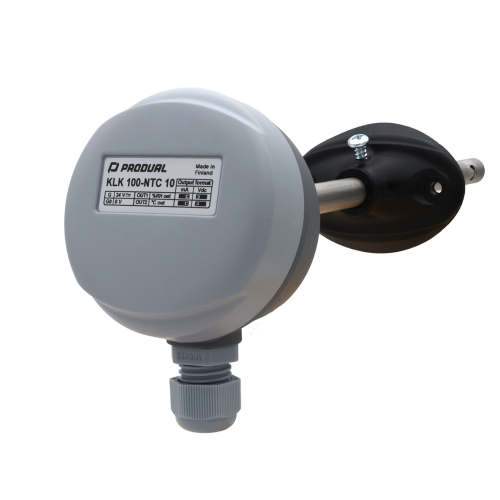 Cảm biến độ ẩm và nhiệt độ NTC 10K ống gió KLK 100-NTC 10 loại cảm biến lắp đặt trong ống gió (duct sensor), dùng trong hệ thống điều hòa không khí và thông gió (HVAC).