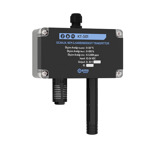 Cảm biến khí CO2, nhiệt độ và độ ẩm gắn tường dòng KT‑5X1 của hãng EMS – Turkey là thiết bị tích hợp ba chức năng đo lường chất lượng không khí trong cùng một cảm biến, phục vụ cho các ứng dụng giám sát và điều khiển trong hệ thống HVAC, tòa nhà thông minh, văn phòng, bệnh viện, khách sạn và trường học. Thiết bị giúp theo dõi nồng độ CO2, độ ẩm và nhiệt độ phòng một cách chính xác, ổn định và đáng tin cậy.