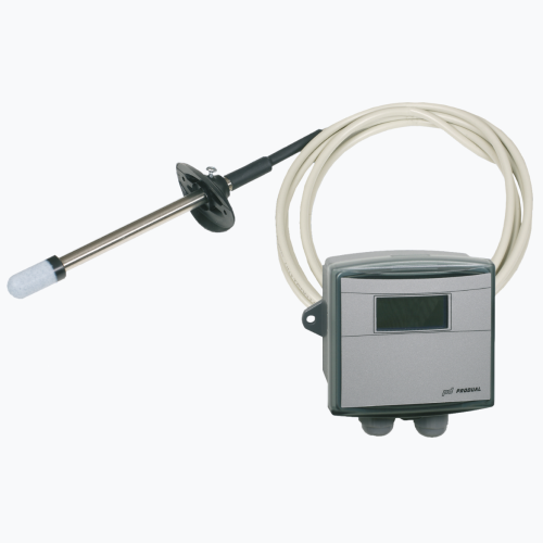 Cảm biến nhiệt độ và độ ẩm dạng đầu dò là thiết bị cảm biến đo nhiệt độ và độ ẩm không khí trong đường ống gió, trong phòng kho hoặc tank chứa. Độ ẩm là lượng hơi nước tồn tại trong không khí, độ ẩm tuyệt đối là khối lượng nước được tính bằng gam trên 1 mét khối không khí nào đó. Nhiệt độ cao thì độ ẩm càng cao và ngược lại nhiệt độ giảm độ ẩm sẽ giảm, thông thường độ ẩm sẽ được tính bằng phần trăm.