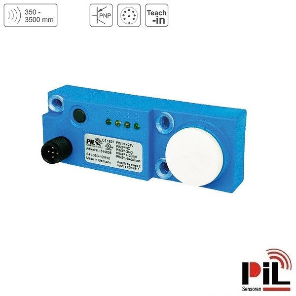 Cảm biến siêu âm đo mức P41-350-2P-CM12 của Hãng PIL - Germany là cảm biến đo khoảng cách sử dụng nguyên lý sóng siêu âm phát ra và thu về để tính toán chính xác khoảng cách từ cảm biến tới bề mặt vật thể cần đo chuyên dùng để đo mức nước, đo mức dầu, đo mức chất lỏng với độ chính xác cao dùng để kết nối, điều khiển và hiển thị mức lưu chất, khoảng cách cần đo trong các ứng dụng công nghiệp và nhà máy.