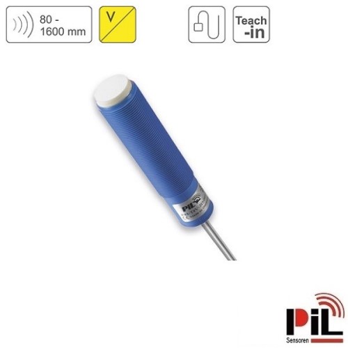 Cảm biến siêu âm đo mức P43-160-M18-PBT-U-2m (1600mm, 0-10V) của Hãng PIL - Germany là cảm biến đo khoảng cách sử dụng nguyên lý sóng siêu âm phát ra và thu về để tính toán chính xác khoảng cách từ cảm biến tới bề mặt vật thể cần đo chuyên dùng để đo mức nước, đo mức dầu, đo mức chất lỏng với độ chính xác cao dùng để kết nối, điều khiển và hiển thị mức lưu chất, khoảng cách cần đo trong các ứng dụng công nghiệp và nhà máy.
