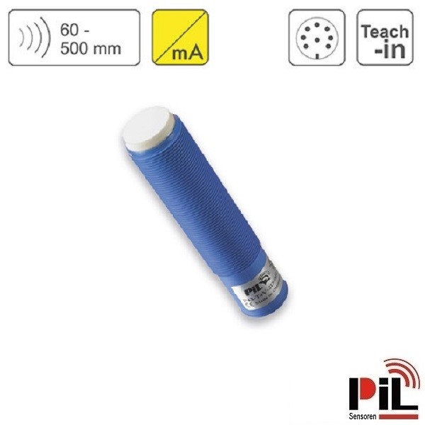 Cảm biến siêu âm đo mức P43-50-M18-PBT-I-CM12 (500mm, 4-20mA) của Hãng PIL - Germany là cảm biến đo khoảng cách sử dụng nguyên lý sóng siêu âm phát ra và thu về để tính toán chính xác khoảng cách từ cảm biến tới bề mặt vật thể cần đo chuyên dùng để đo mức nước, đo mức dầu, đo mức chất lỏng với độ chính xác cao dùng để kết nối, điều khiển và hiển thị mức lưu chất, khoảng cách cần đo trong các ứng dụng công nghiệp và nhà máy.
