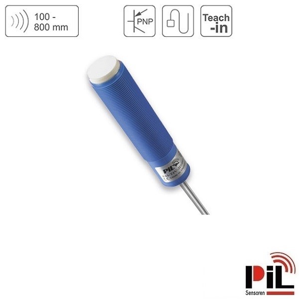 Cảm biến siêu âm đo mức P43-80-M18-PBT-2P-2m (800mm, 2 x PNP, NO/NC) của Hãng PIL - Germany là cảm biến đo khoảng cách sử dụng nguyên lý sóng siêu âm phát ra và thu về để tính toán chính xác khoảng cách từ cảm biến tới bề mặt vật thể cần đo chuyên dùng để đo mức nước, đo mức dầu, đo mức chất lỏng với độ chính xác cao dùng để kết nối, điều khiển và hiển thị mức lưu chất, khoảng cách cần đo trong các ứng dụng công nghiệp và nhà máy.