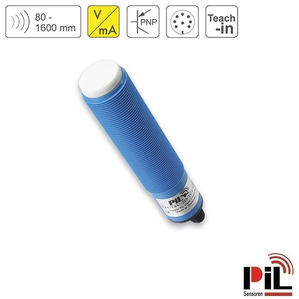Cảm biến siêu âm đo mức P44-160-M30-UI2P-CM12 (1600mm, 2 x PNP, NO/NC, 0-10V, 4-20mA) của Hãng PIL - Germany là cảm biến đo khoảng cách sử dụng nguyên lý sóng siêu âm phát ra và thu về để tính toán chính xác khoảng cách từ cảm biến tới bề mặt vật thể cần đo chuyên dùng để đo mức nước, đo mức dầu, đo mức chất lỏng với độ chính xác cao dùng để kết nối, điều khiển và hiển thị mức lưu chất, khoảng cách cần đo trong các ứng dụng công nghiệp và nhà máy.