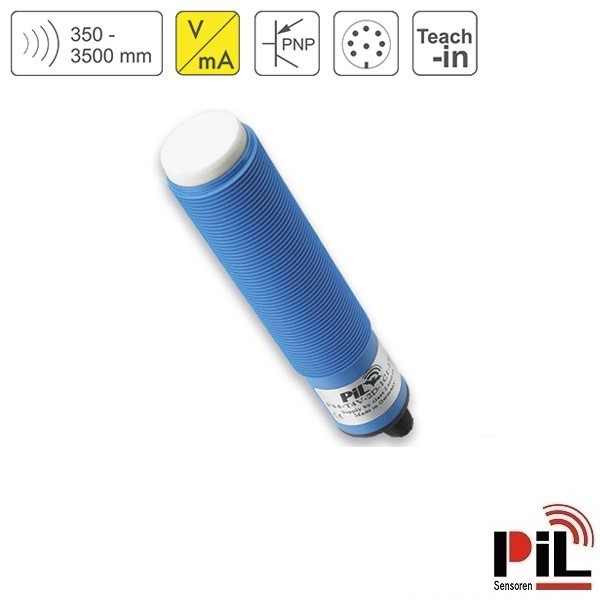 Cảm biến siêu âm đo mức P44-350-M30-UI2P-CM12 (3500mm, 2 x PNP, NO/NC, 0-10V, 4-20mA) của Hãng PIL - Germany là cảm biến đo khoảng cách sử dụng nguyên lý sóng siêu âm phát ra và thu về để tính toán chính xác khoảng cách từ cảm biến tới bề mặt vật thể cần đo chuyên dùng để đo mức nước, đo mức dầu, đo mức chất lỏng với độ chính xác cao dùng để kết nối, điều khiển và hiển thị mức lưu chất, khoảng cách cần đo trong các ứng dụng công nghiệp và nhà máy.