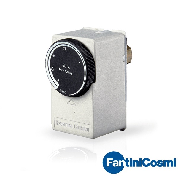 Công tắc áp suất nước B01D của Hãng FANTINI COSMI - ITALY hay còn gọi là công tắc báo quá áp suất gắn ống nước là sự kết hợp của bộ tiếp điểm đóng ngắt dạng relay với một cảm biến áp suất. Công tắc áp suất cho phép giám sát áp suất đường ống nước đến ngưỡng cài đặt, sau đó sẽ tác động relay đóng hoặc ngắt một thiết bị ngoại vi trên hệ thống như van xả, bơm, hệ thống tự động. Công tắc áp suất hoạt động hoàn toàn tự động theo ngưỡng cài đặt trước.