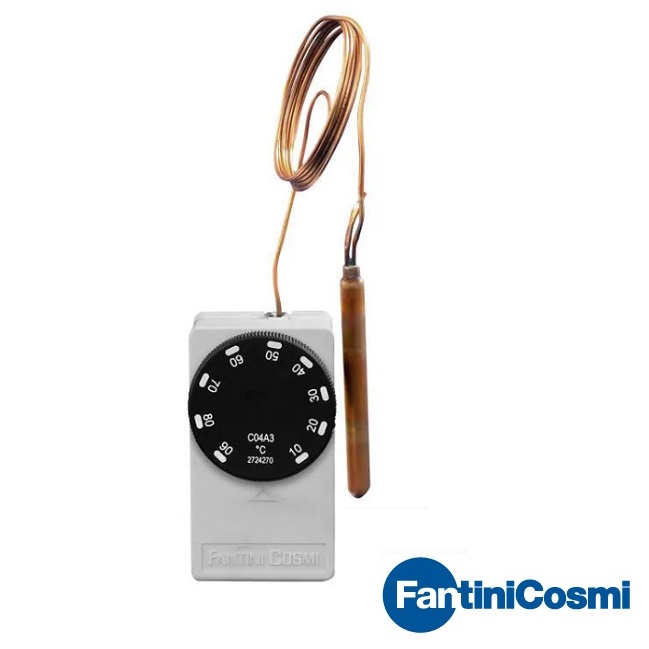Công tắc nhiệt độ tủ sấy dạng dây C04E3 của Hãng FANTINI COSMI - ITALY hay còn gọi là công tắc báo quá nhiệt độ lò hấp dạng dây, công tắc quá nhiệt tủ sấy dạng mao dẫn là sự kết hợp của bộ tiếp điểm đóng ngắt dạng relay với một đầu dò nhiệt độ. Công tắc nhiệt độ dạng dây cho phép giám sát nhiệt độ đến ngưỡng cài đặt, sau đó sẽ tác động relay đóng hoặc ngắt một thiết bị ngoại vi trên hệ thống như quạt hút, quạt thổi hoặc điều hòa không khí. Công tắc hoạt động hoàn toàn tự động theo ngưỡng cài đặt trước.