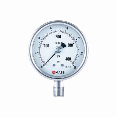 Đồng hồ đo áp suất MASS có giá thành rất cạnh tranh, chất lượng cao, độ chính xác cao và hoạt động bền bỉ lâu dài có các tùy chọn chân đứng và chân sau, mặt đồng hồ 63mm, 100 mm, 150 mm, 250 mm.