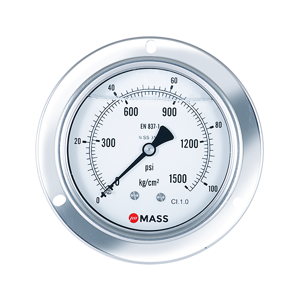 Đồng hồ áp suất 1 bar chân sau 100-GFS-S-L-04-B-0/1 BAR-=-FX-CD4 của Hãng MASS hay còn gọi là đồng hồ đo áp suất chất lỏng có đế gắn bảng, gắn bề mặt dùng để đo áp suất nước sạch, đo áp suất nước thải, đo áp suất dung dịch hóa chất, đo áp suất chất lỏng, đo áp suất nước nóng, đo áp suất nước lạnh.