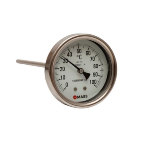 Đồng hồ đo nhiệt độ 100-BMT-08-=-70-R-200-0/300 C-CD4 của Hãng MASS - India là đồng hồ có thiết kế dạng chân đứng đẹp mắt và tinh tế từ thép không rỉ cao cấp cho độ bền cao, sử dụng lâu dài và ổn định để cắm vào ống dẫn với chiều dài tùy chỉnh, mặt đồng hồ 100 mm cho phép quan sát dễ dàng giá trị nhiệt độ. Đồng hồ nhiệt độ dòng BMT cho phép lựa chọn dải đo nhiệt độ phù hợp với từng ứng dụng của khách hàng từ dải -10 độ C cho đến 600 độ C.