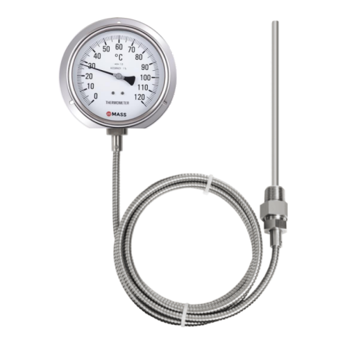 Đồng hồ nhiệt độ dạng dây, đồng hồ nhiệt độ mao dẫn, đồng hồ đo nhiệt độ có dây là đồng hồ đo nhiệt độ có dây dây nối từ mặt đồng hồ và đầu dò cảm biến nhiệt độ được sử dụng để đo nhiệt độ của chất lỏng, chất khí ăn mòn và không ăn mòn trong tất cả các ngành công nghiệp.