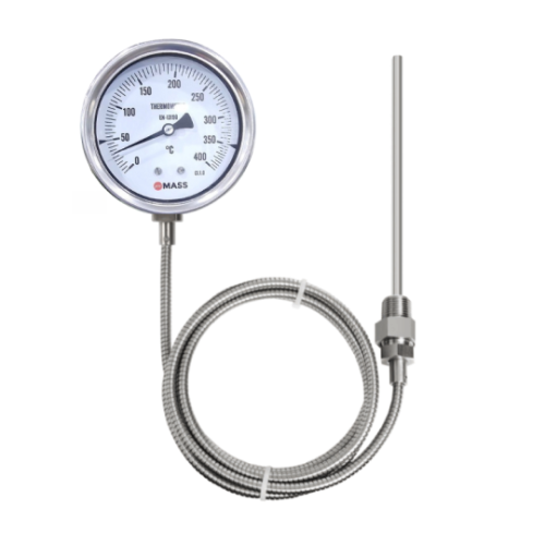 Đồng hồ nhiệt độ dạng dây, đồng hồ nhiệt độ mao dẫn, đồng hồ đo nhiệt độ có dây là đồng hồ đo nhiệt độ có dây dây nối từ mặt đồng hồ và đầu dò cảm biến nhiệt độ được sử dụng để đo nhiệt độ của chất lỏng, chất khí ăn mòn và không ăn mòn trong tất cả các ngành công nghiệp.